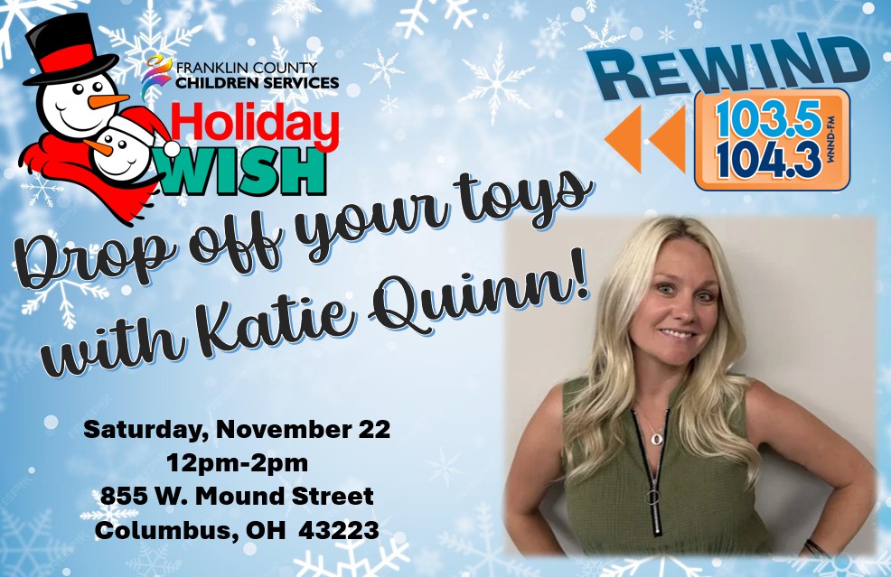 Join Rewind’s Katie Quinn and Franklin County Children Services this Holiday season and help make wishes come true for children right here in Central Ohio through our Holiday Wish Toy Drive!