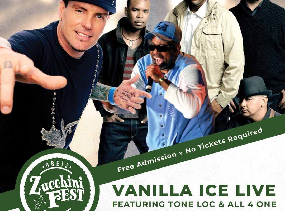 Vanilla Ice, Rapper Tone Loc, and All-4-One will be performing LIVE at the Obetz Zucchinifest on Saturday, September 2, 2023!