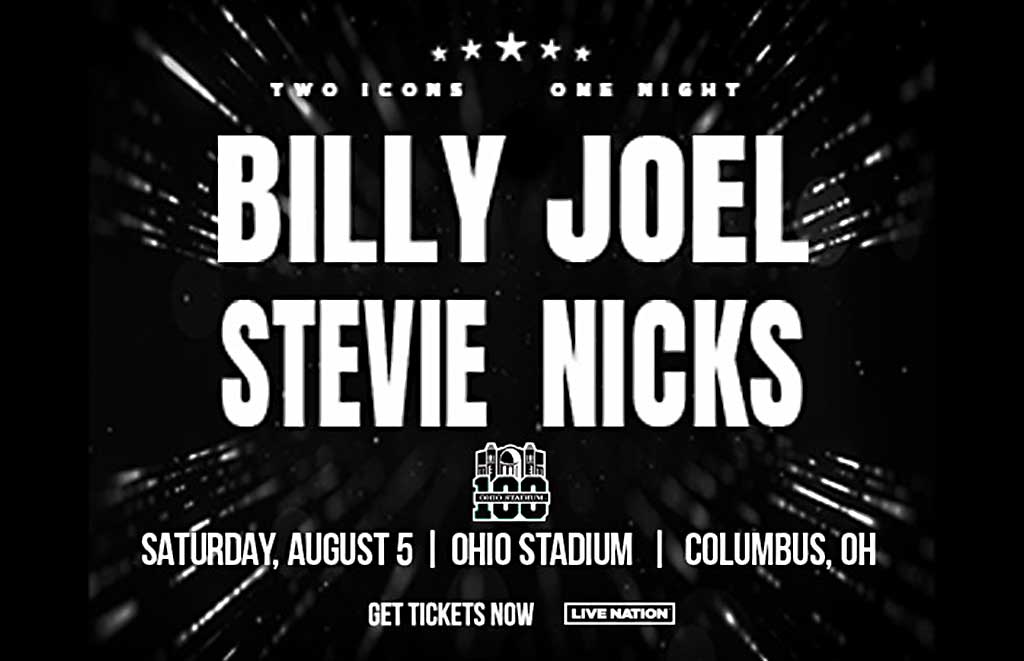 Together, for the first time ever, Billy Joel and Stevie Nicks announced their “Two Icons, One Night” Tour, which will make a stop in Columbus at Ohio Stadium on Saturday, August 5, 2023! Tickets are on sale now at LiveNation.com.
