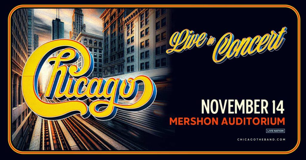 (Columbus, Ohio) Monday, August 5, 2024 – Multi-Grammy award winning band and Rock ‘n Roll Hall of Fame inductees Chicago announced today that they will be performing in Columbus at Mershon Auditorium November 14.