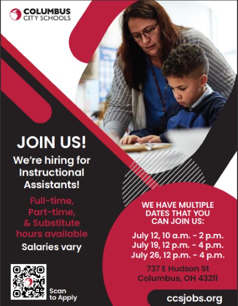 Columbus City Schools is hiring for Instructional Assistants!