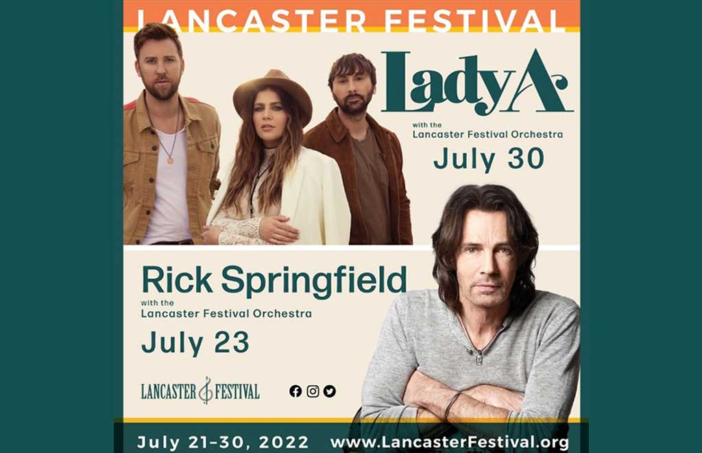 - July 30, Grand Finalé featuring Lady A with the Lancaster Festival Orchestra opening the evening with selections that highlight the 35thanniversary of the orchestra’s creation