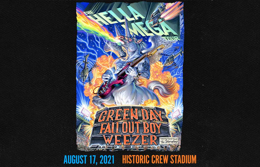 Green Day, Fall Out Boy, and Weezer, three of the biggest acts in rock music, are gearing up to get back on the road this summer. THE HELLA MEGA TOUR, their U.S. headlining stadium run, kicks off with new 2021 dates beginning July 24 in Dallas, TX. Produced by Live Nation, the 21-city North American outing will bring the bands to some of the most renowned stadiums including Dodger Stadium, Wrigley Field, Citi Field, Fenway Park, and more, before wrapping September 6 in Seattle, WA. The Interrupters will appear as special guests on the tour.