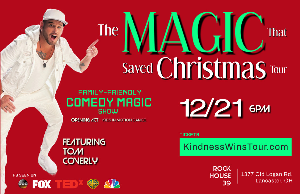 The MAGIC That Saved ChRISTMAS – Join us for an evening filled with family-friendly hilarious comedy, mind-blowing magic tricks at this Christmas-inspired show featuring; nationally touring comedy magician, The Illusionist, Tom Coverly.
